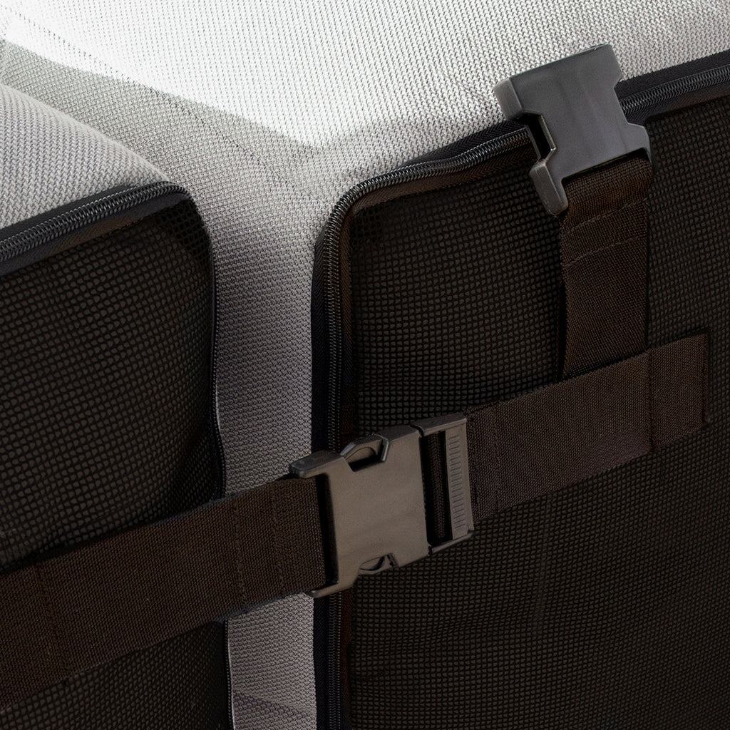 Selo de Qualidade e Sustentabilidade: Nosso compromisso com a qualidade é refletido em cada detalhe. Os tecidos usados são 25 vezes mais resistentes aos raios UV do que o exigido pela indústria, e nossos produtos são desenvolvidos com foco em sustentabilidade, utilizando materiais reciclados e eco-friendly.