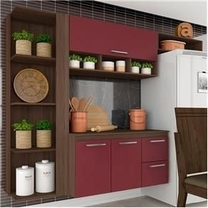 Armário De Cozinha Linda 4 Peças 3 Portas Terraro/ Vinho - At. Home