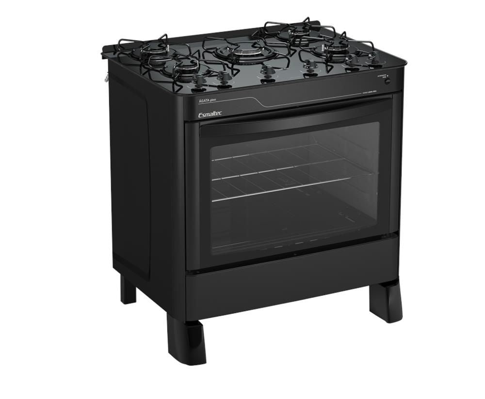 Fogão Ágata Glass 5 Bocas, Preto, Acendimento automático - Esmaltec
