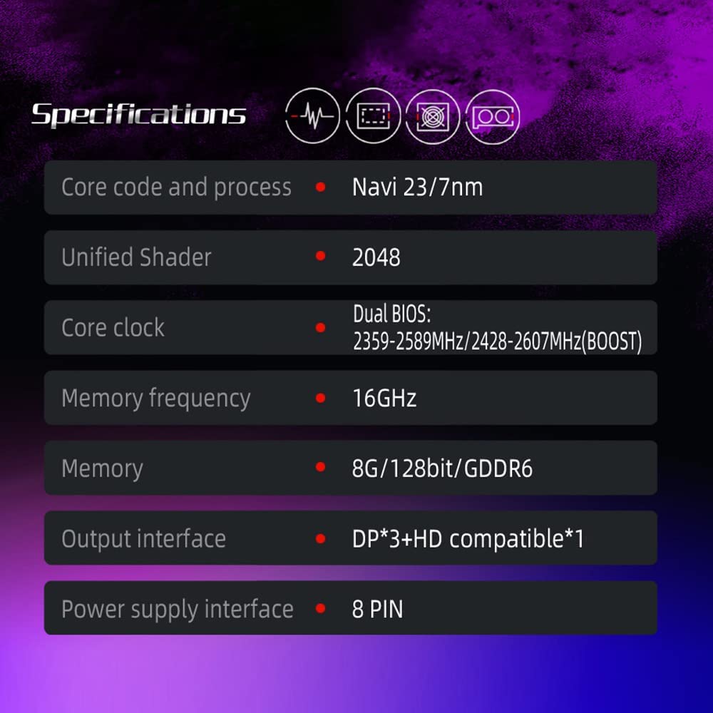 Possui memória 8G / 128bit / GDDR6, frequência de memória de 16 GHz, trazendo jogos e experiência de aplicativos suaves.
