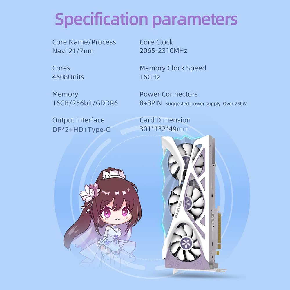 Placa de vídeo,Placa gráfica para jogos RX6800XT-16G D6 com memória 16G / 256bit / GDDR6 Modo de efeito de luz dupla DP + HD + portas de saída tipo C